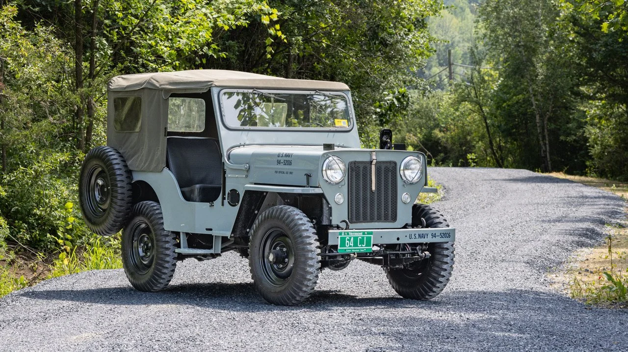 1964 Navy Jeep: This Jeep was purchased by the US Navy in 1964 and sold as a Military Surplus in the 1970s. It was purchased for use by a central PA Fire Department until it was retired. Joe Caprio purchased it from the Fire Dept and restored it to its original condition over many years, even retrieving the original Navy Commission numbers and re-painting the original battleship-gray color. Now up for sale in perfect running order with us at RPM. SOLD!