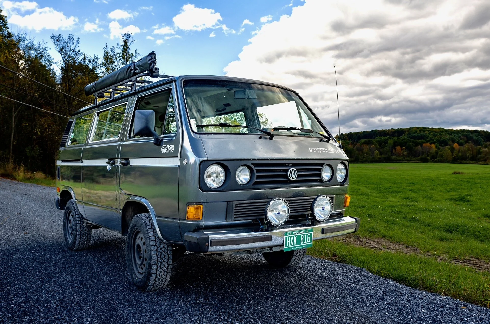 1987 Vanagon GL Syncro (4X4): Up for sale is a beautifully maintained Vanagon Syncro with a factory rear locker and a Blue Star camper interior! Originally from Oregon this van is in amazing survivor condition with some tasteful upgrades including: Fast 2.0 engine conversion, shift on the fly 2x4 to 4x4 decoupler, Old Man Emu suspension, Toyo A/T tires, custom roof rack, Yakima awning, bike rack, Burley Motorsports shifter and much more. All maintenance is up to date, ready to drive anywhere. SOLD