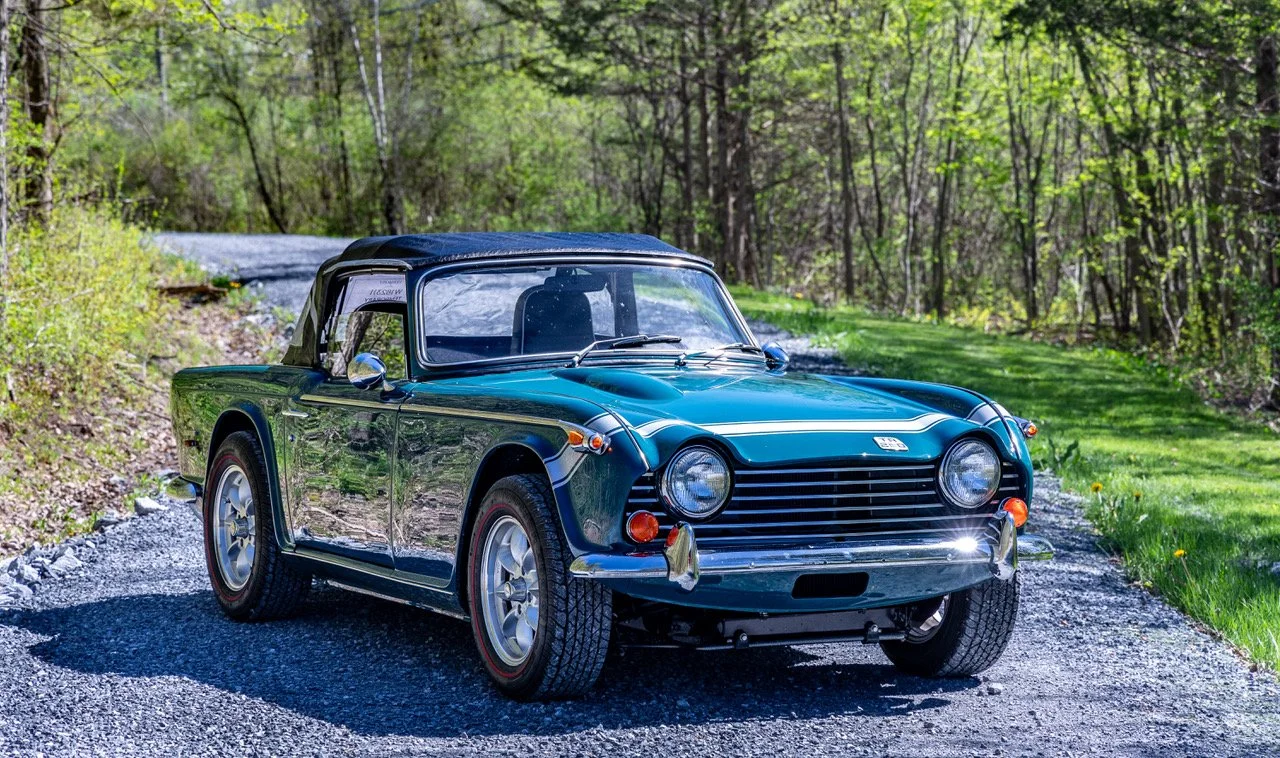 1968 Triumph TR250: We are excited to offer this practically new TR250 in its original color of Valencia Blue. Complete with all the restoration documentation, pictures, notes and drawings. Not only is the car fully restored it is thoughtfully upgraded with a RATCO frame and supporting equipment including: 5 speed gearbox, Nissan rear diff, Wilwood brakes, front and rear shock conversion kit, front and rear sway bars and much more. Most importantly it has its original motor, and with it all the same characteristics as the original car just with much more practicality. In service for a V8 conversion until the spring