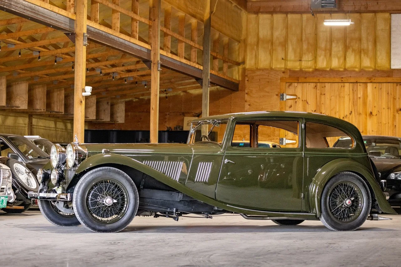1934 Alvis SB Speed 20 Vanden Plas: We are very proud to offer this spectacular Alvis Speed 20. This is one of the eight known surviving Speed 20’s with the original body. The car is confirmed all matching numbers by Alvis historian Wayne Brooks. (Speed 20 SB Vanden Plas 3240 2 Door Saloon, chassis 11845, engine 12292, car 16559, English registration BGK 243, original colours maroon with white lines, dispatched from the Alvis Works, as a chassis only to Vanden Plas Coachbuilders, for Alvis agent Charles B. Follett, Ltd., 18 Berkeley Street, London W.1.). Not only is the car rich with historical documents it also has had some important owners over the years. Notable restored by Don Breslauer for famous actor and RM auctioneer Ed Herrmann and subsequently auctioned to one of Vermonts finest citizens Ken Squire in 2015 at $198k.