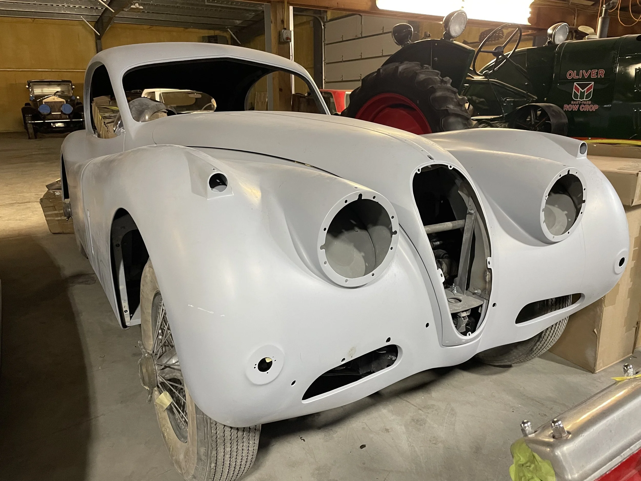 1959 Jaguar 140 FHC MC: We are excited to offer this extremely rare early 140 FHC. This car came from the factory with aluminum doors, trunk and hood. Chasis is finished, body work is perfect, engine and transmission are rebuilt. Comes with a new interior in the box, rebuilt carbs, restored gauges, chrome is done, new wheels and tires. The car needs paint and assembly. SOLD!