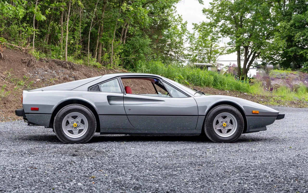 1977 308 GTB: We are very excited to offer this stunning 308 GTB in Graphite over Bordeaux. This U.S model is the last year of the non-catalyst cars, factory big cams and 4 carbs! One of the most complete and undisturbed 308’s we have seen. Complete with working air pump, all underbody shields, original spare, original interior, unrestored undercarriage…. very cool time piece. The car has had a repaint in original color but not sure of when. Needs a belt service (on the schedule) and a few maintenance items but runs and drives incredibly well. SOLD!